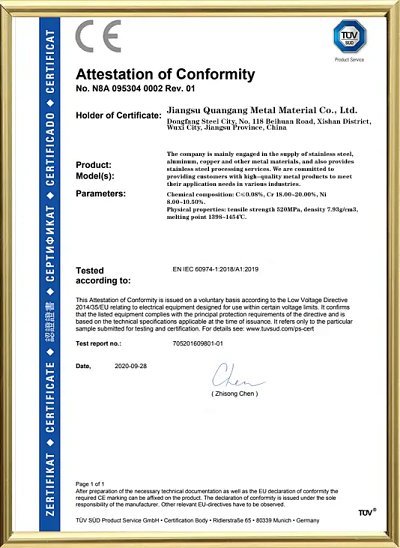 Our company is a large-scale enterprise integrating sales, wholesale, processing and distribution of all kinds of high-quality imported and exported stainless steel, carbon steel, copper, aluminum and alloy materials, steel, and production and service according to ASTM, JIS, DIN and BS standards. Our company has passed ISO9001 quality management system certification and CE certification, and our MTC is based on en10204-3.1 certificate. We support third-party detection such as SGS, BV and lloyd's. The international logistics clearance company under the company has formed a comprehensive global steel supply chain group